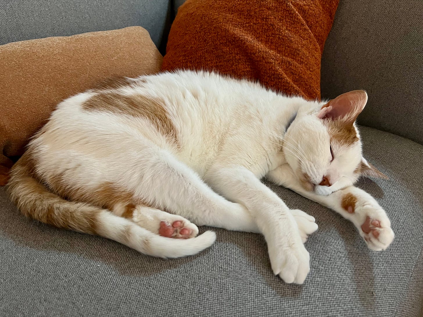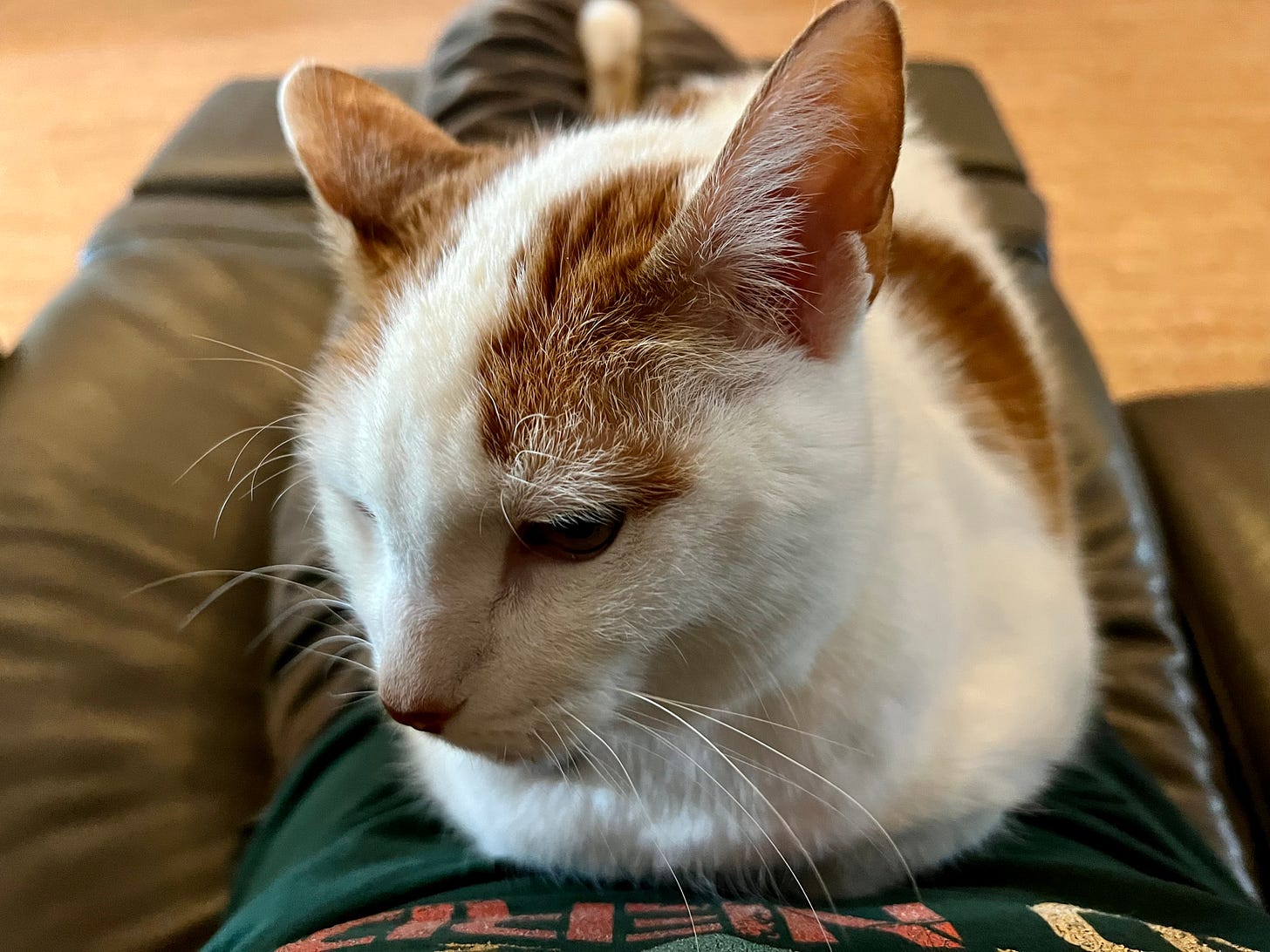 Our two cats are getting close to 19 years old now. Although they are brothers from the same litter, Reggie is showing his age much more. He’s had a few seizures, and his arthritis is at the point where we call him “animatronic Reggie” because of his stilted way of walking.