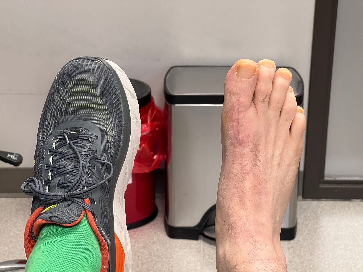 After limping around in pain for seven years, I decided it was time to have foot surgery. I couldn’t put any weight on it for six weeks after the surgery, so I had two scooters in the house to motor around on. I chose not to include the really gross post-surgical photo.