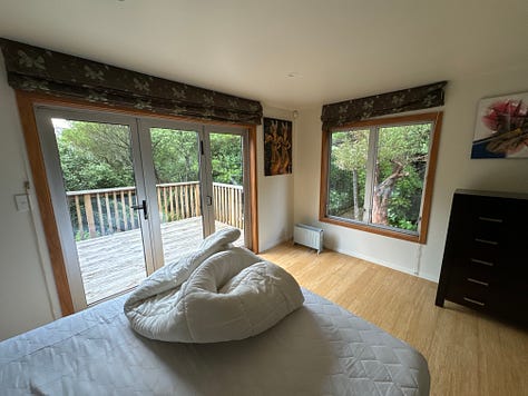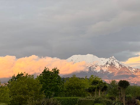 I would spend Sunday through Thursday up in a rented house near Masterton and then head back to Wellington for the weekend, about a 90-minute drive away. The nearby mountains were snow-covered during much of my stay there.