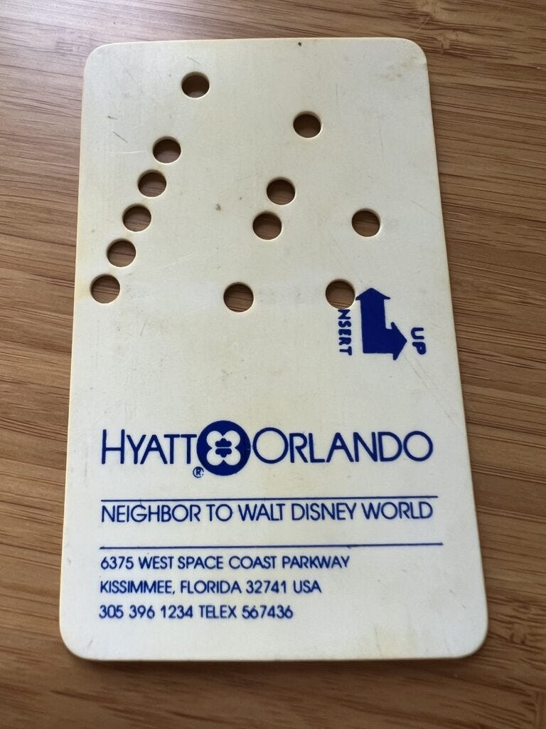 You probably know this is a room key. Back then, it felt like something from the future. When I lost the key one time, they just reprogrammed the room and handed us new keys. Magic!