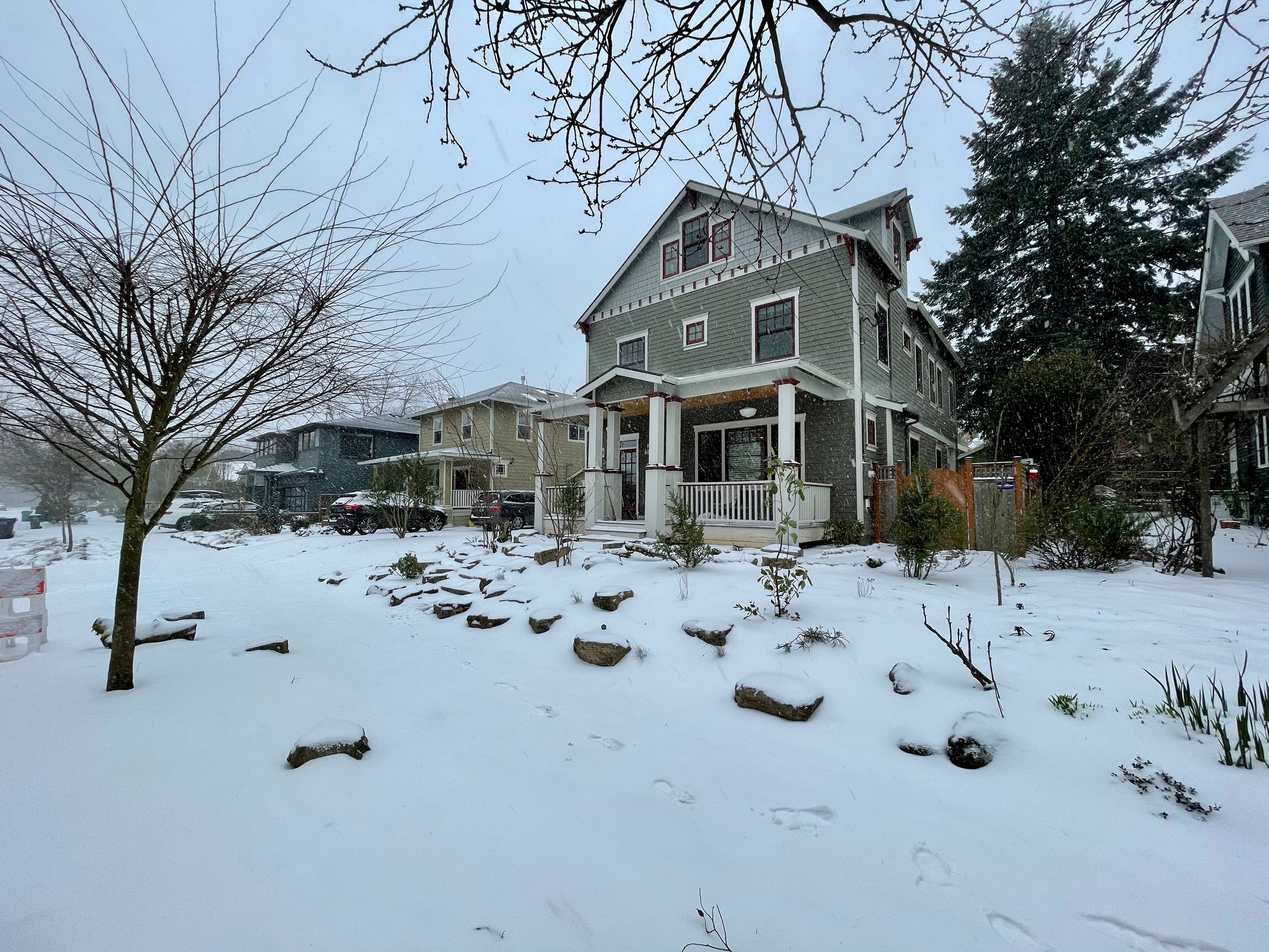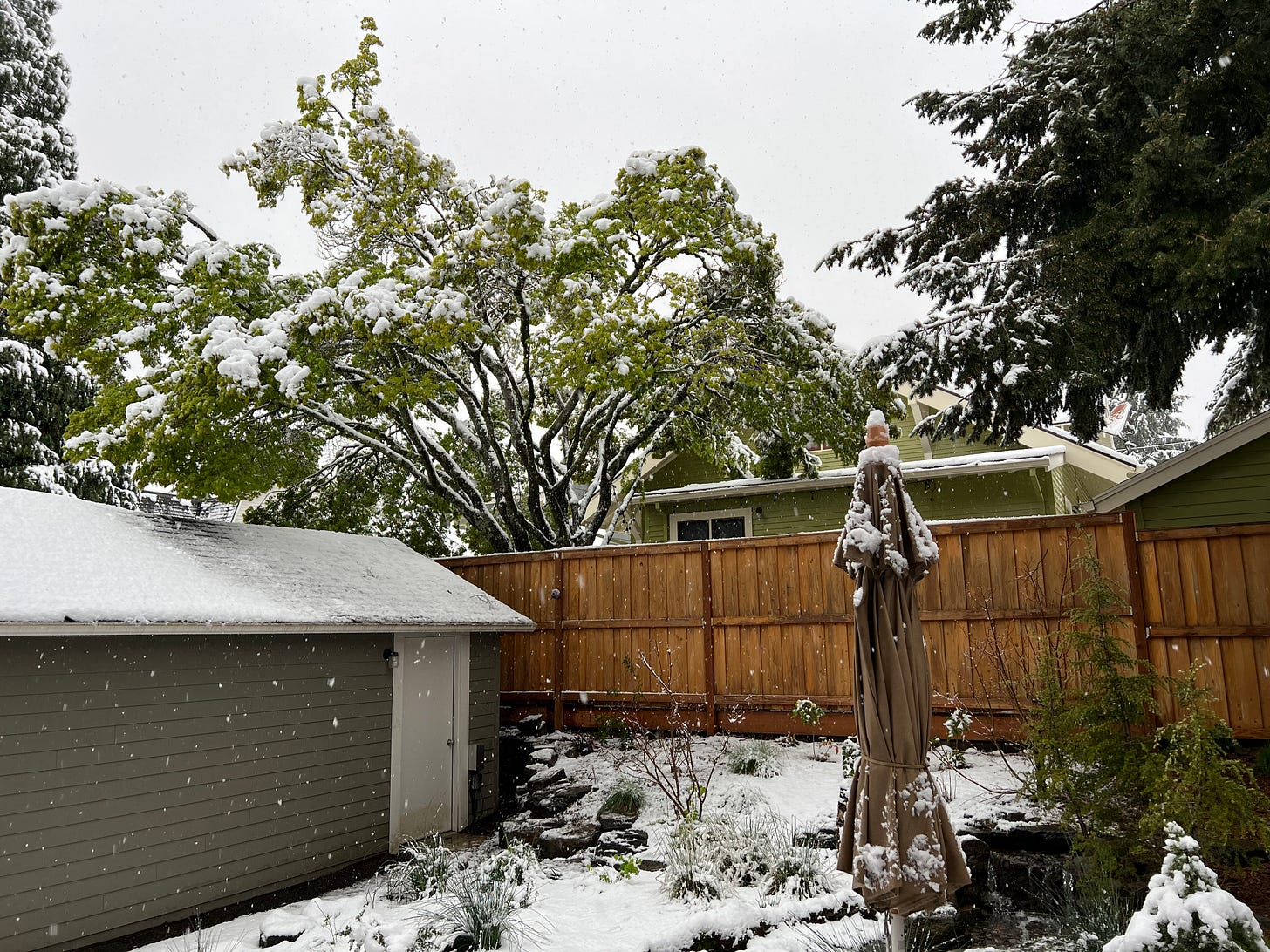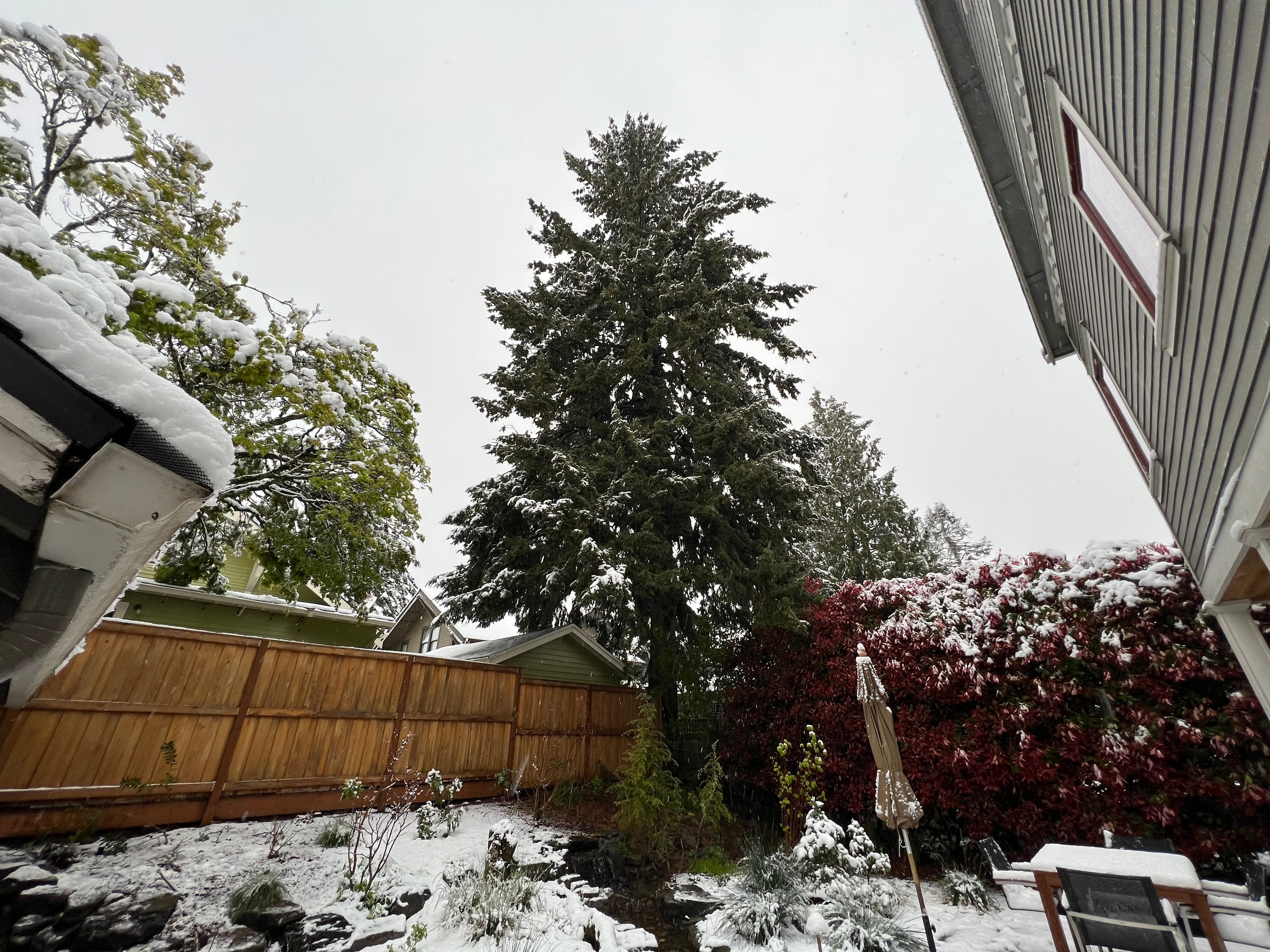 Speaking of Japanese things, we are very fortunate to have a very large Japanese maple and an enormous douglas fir in the yards behind us. Our neighbor also has a house painted a beautiful Kermit-the-frog green.