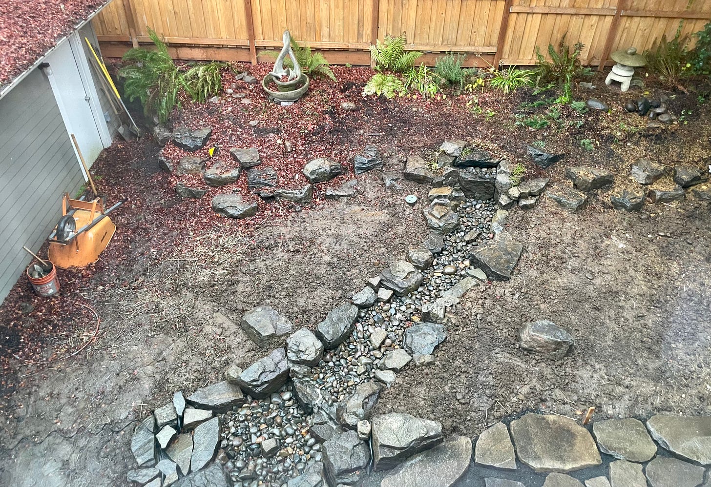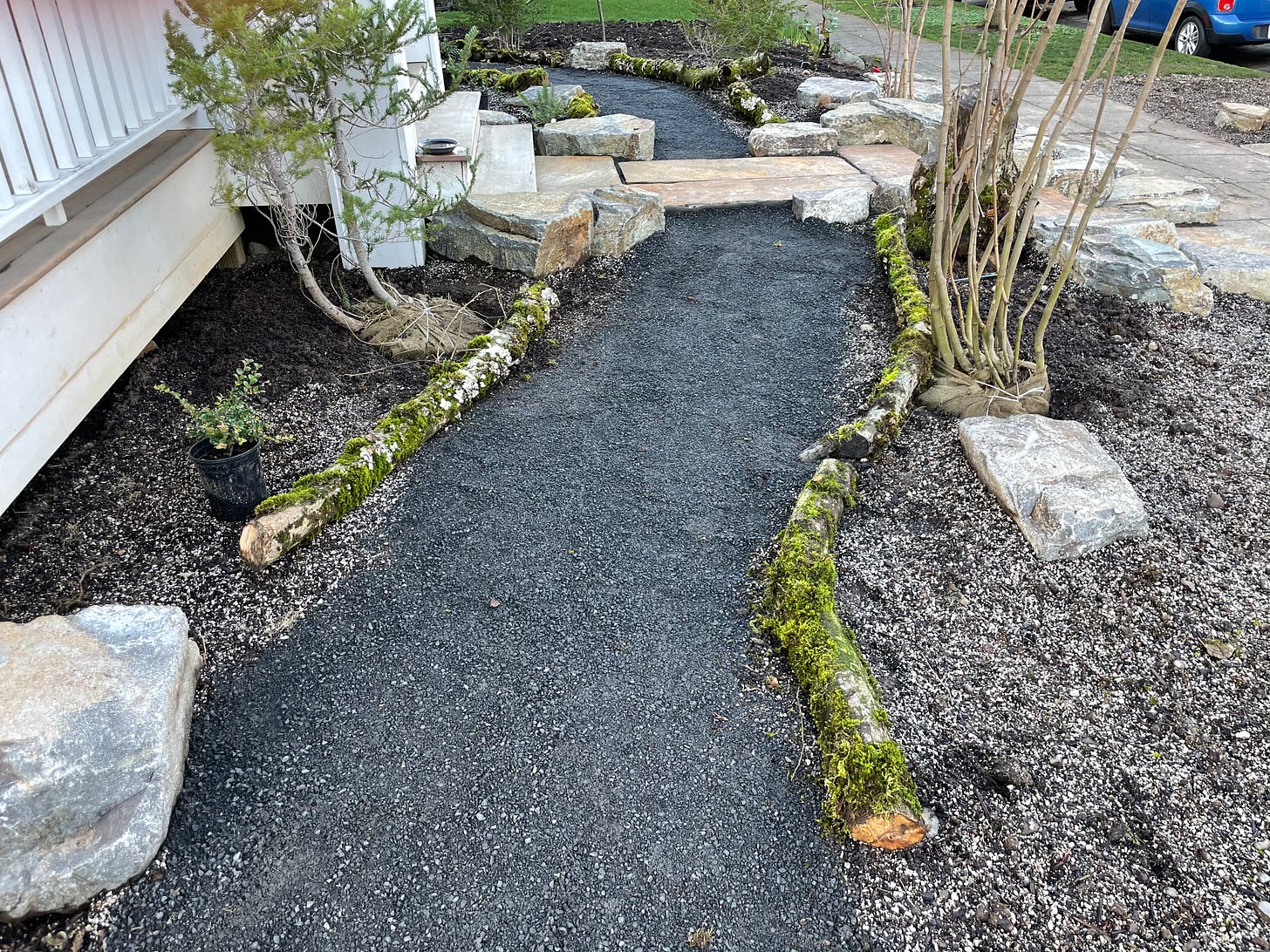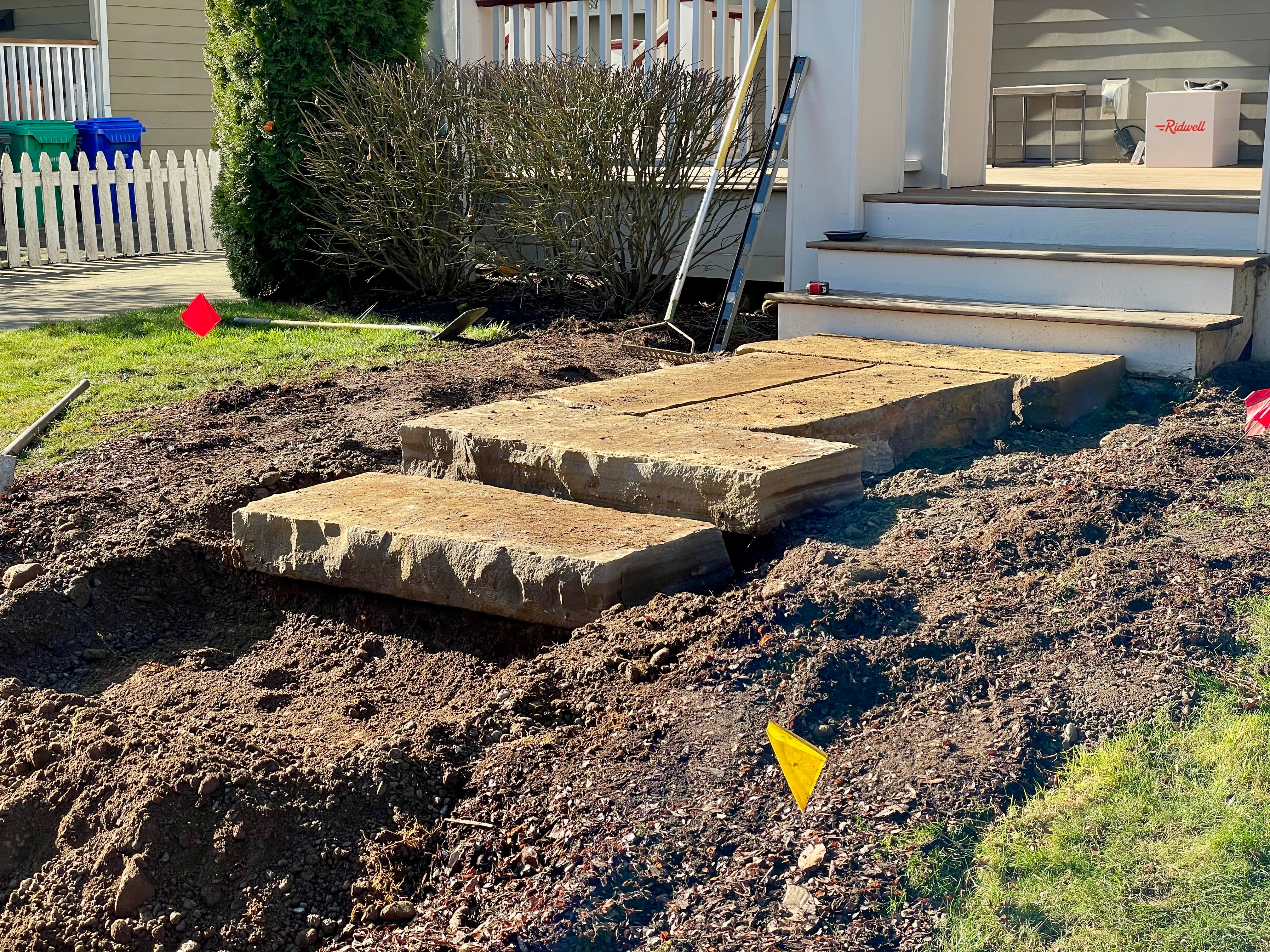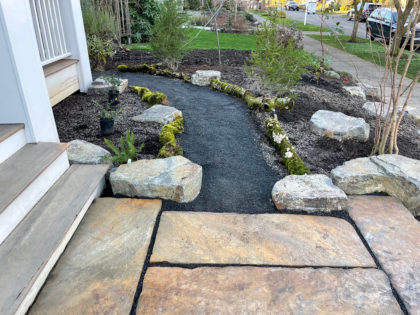 We also wanted to create an interesting front walkway and a small patio in the backyard. We had visited the Portland Japanese Garden a few months earlier. In addition to being a stunning garden, we were blown away by the creative stone walkways. These photos inspired what we eventually did at our house.