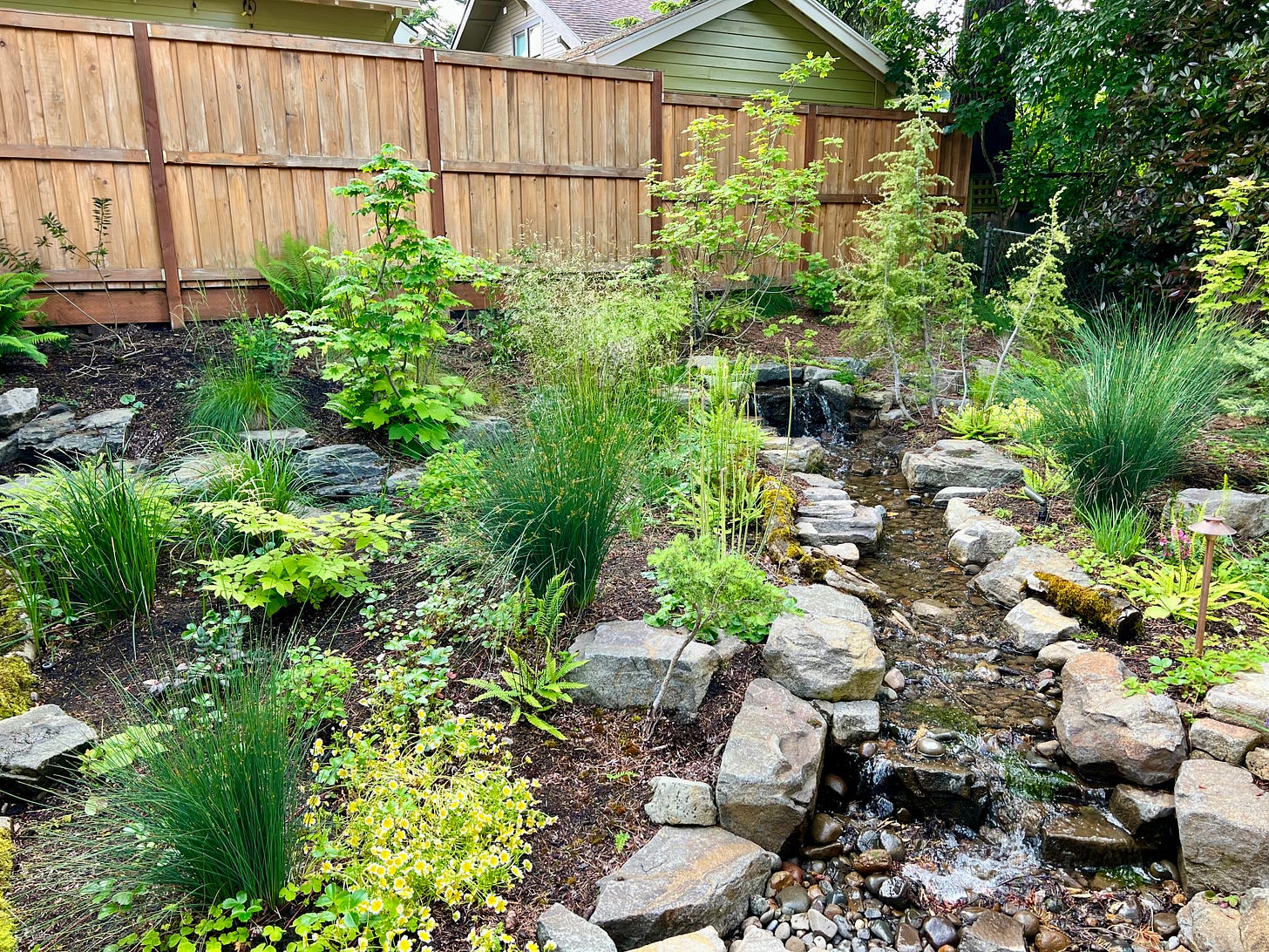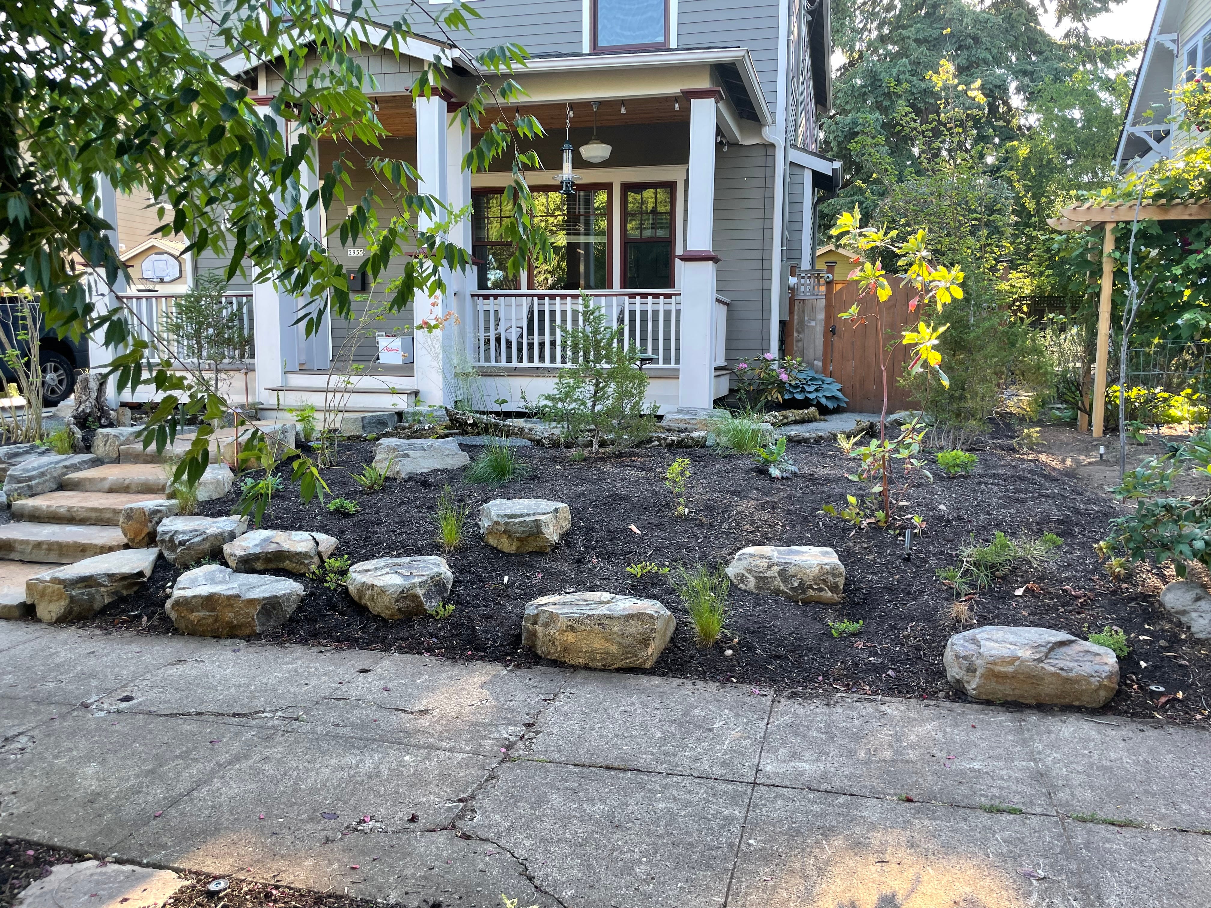 It’s hard to believe how sparse things looked when everything was planted! Except for some trees planted in the side yards, all the plants came from Boskey Dell Natives, an amazing native nursery located just outside the Portland suburbs.