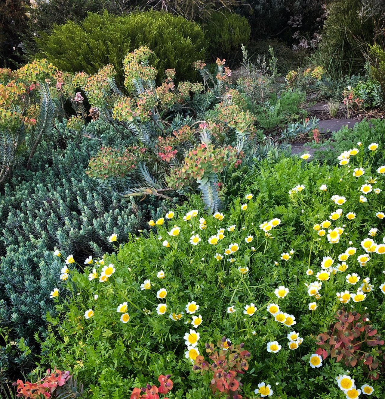 Laying out plants in a more “random” fashion yields beautiful results. Plants don’t need to be planted in clusters or rows or be evenly spaced.