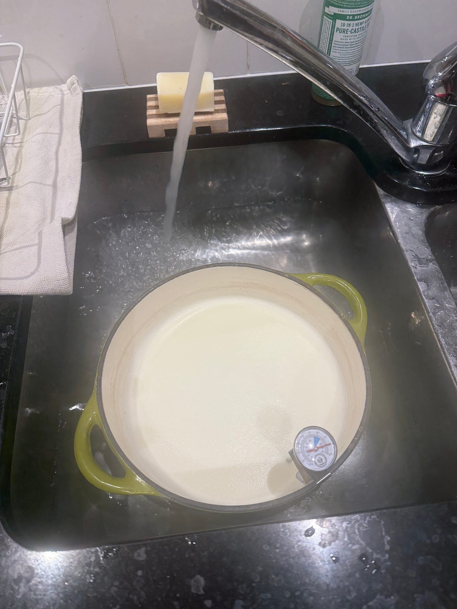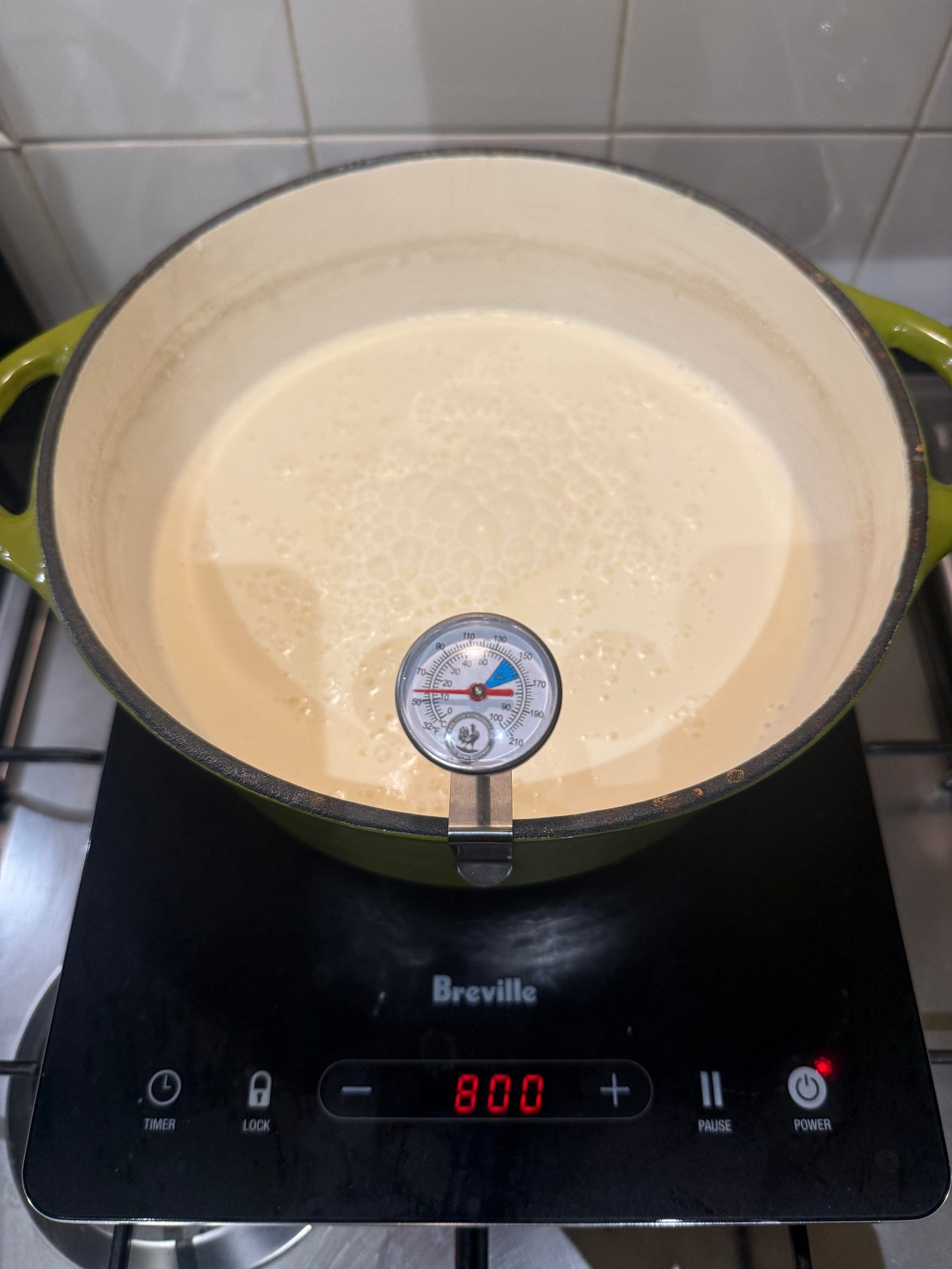 If you end up cooling it below 45°C, the fix is simple. Just put it back on the stove and gently heat it back up to 45°C. No harm, no foul. The key thing is to get a temperature that the yoghurt bacteria will like. You don’t need to start over with the whole process!