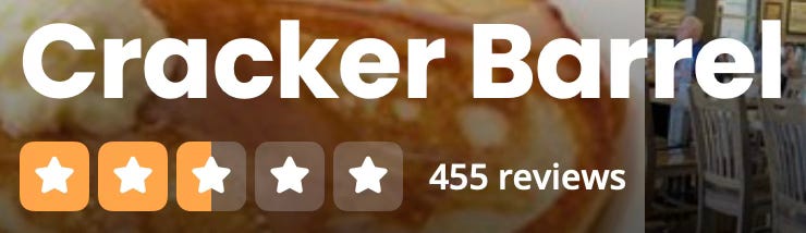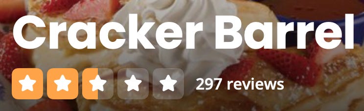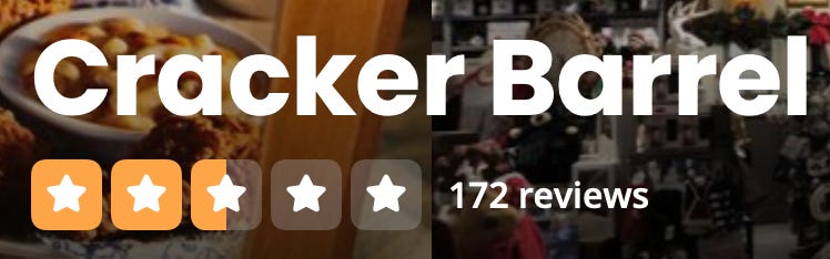I think “casualty” is a gross understatement. It’s more than just a loss, it’s an indictment of the values that Portland and Cracker Barrel share. Here’s a helpful chart showing how much both have in common.
